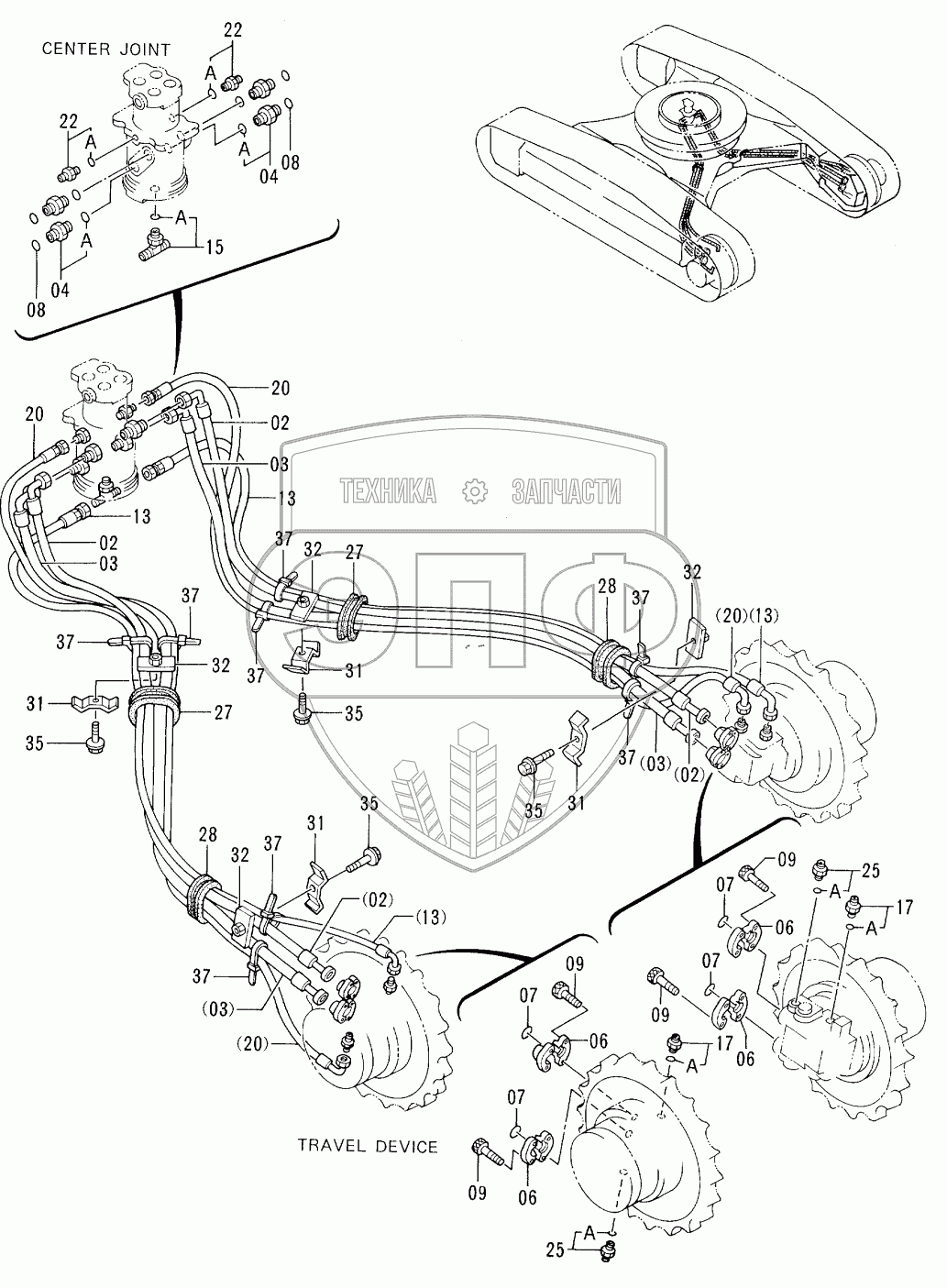 Каталог запасных частей к технике: Hitachi EX-300-2. TRAVEL PIPINGS <STD. TRACK>
