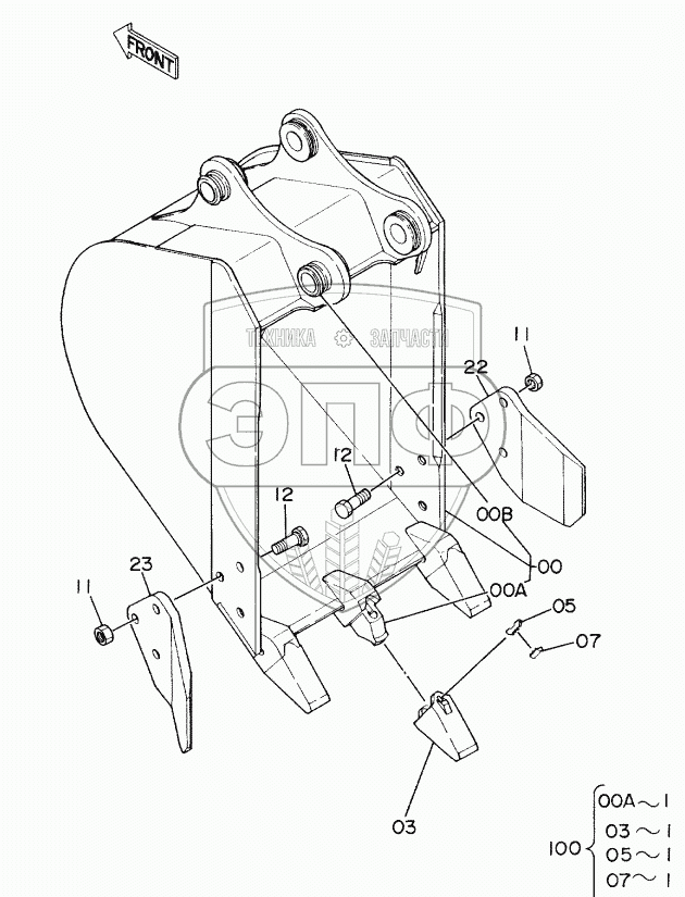 Каталог запасных частей к технике: Hitachi EX-60. BUCKET 0.1
