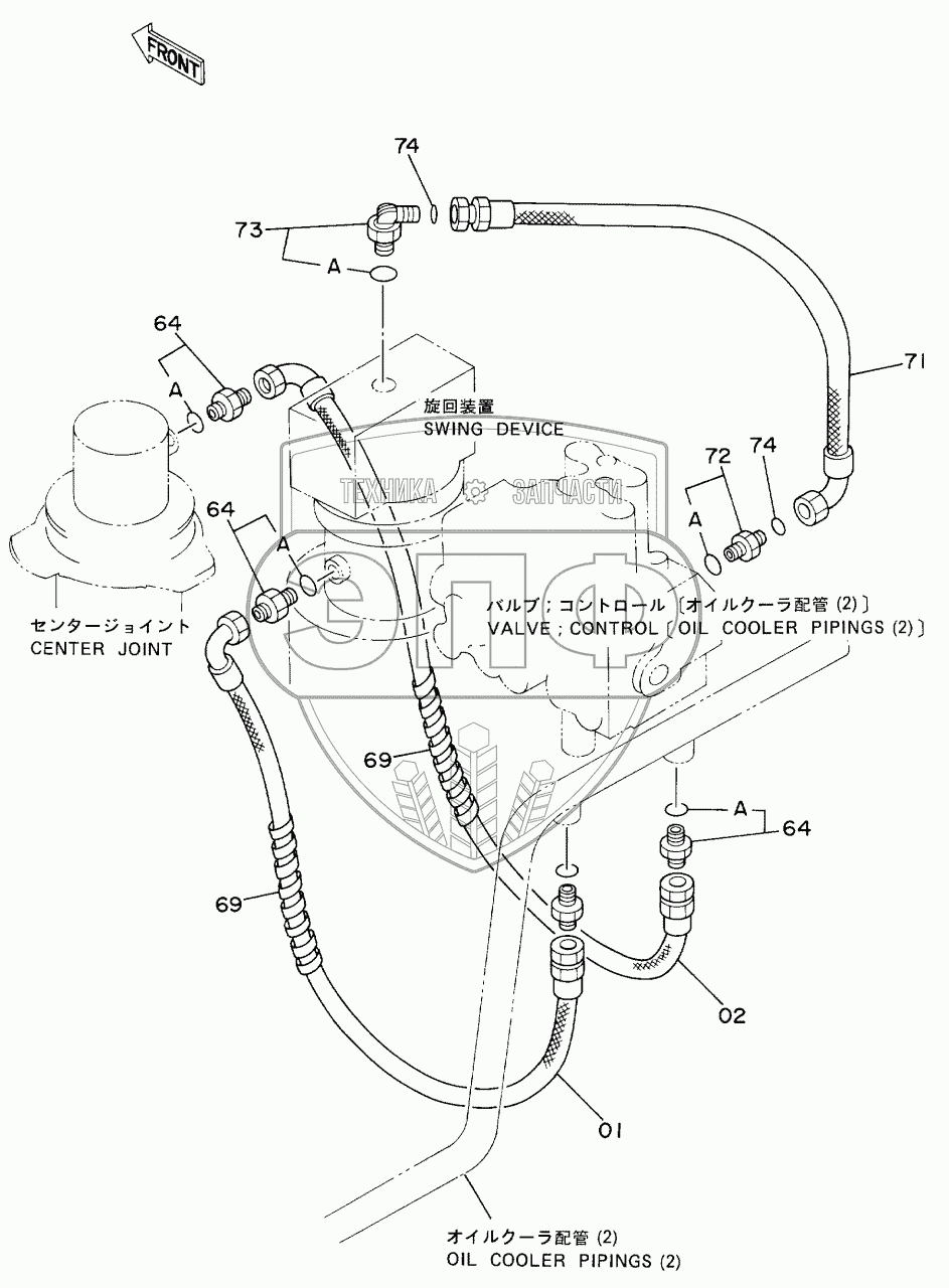 Каталог запасных частей к технике: Hitachi EX-60. OIL COOLER PIPINGS (3)