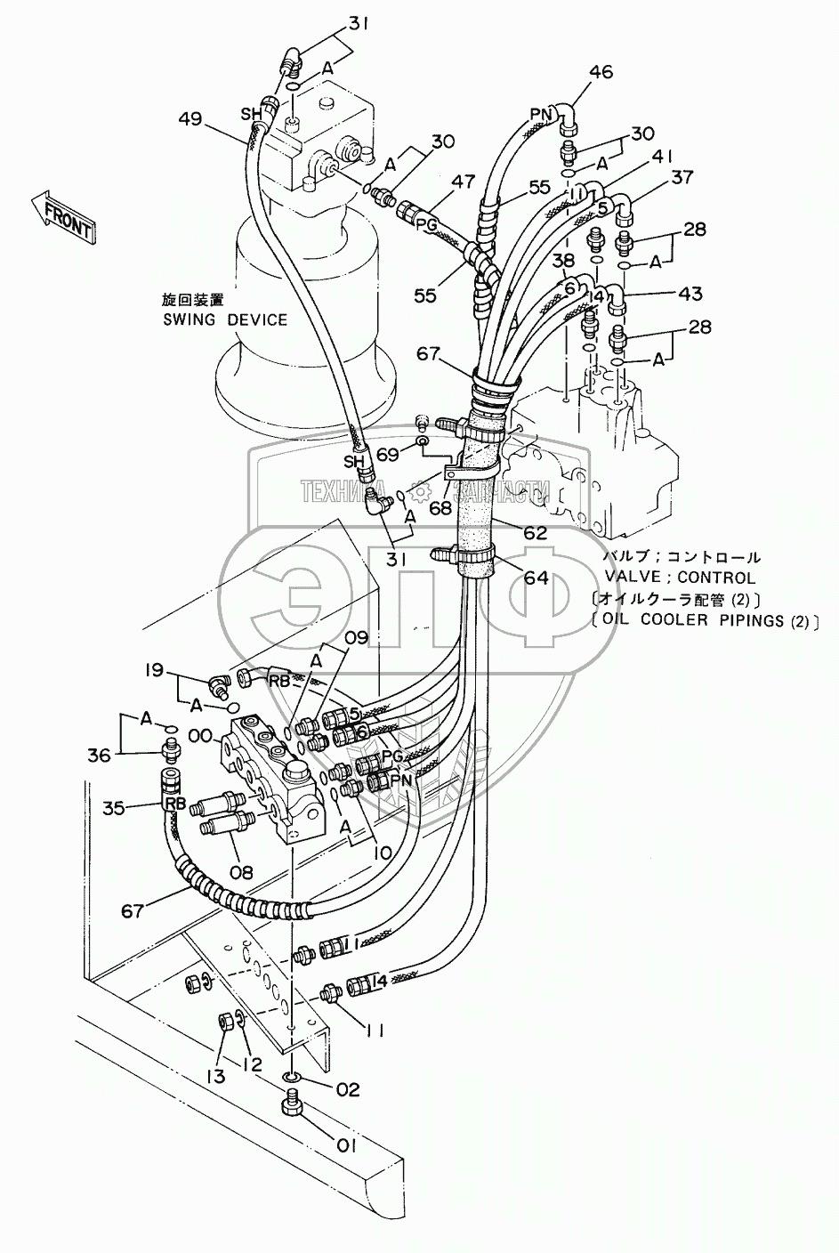 Каталог запасных частей к технике: Hitachi EX-60. PILOT PIPINGS (2-1)