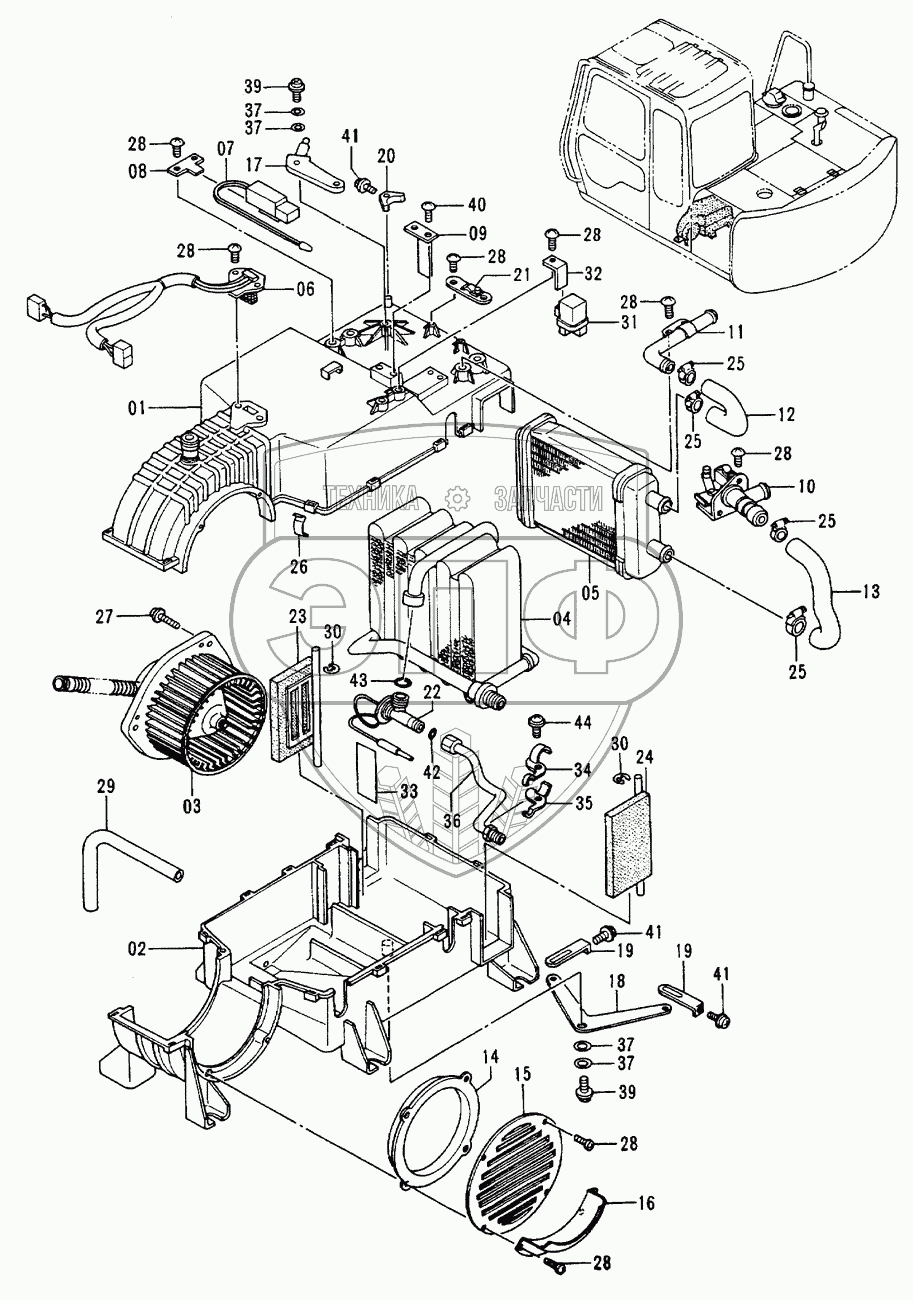Каталог запасных частей к технике: Hitachi EX-60-2. Air-Con. Unit