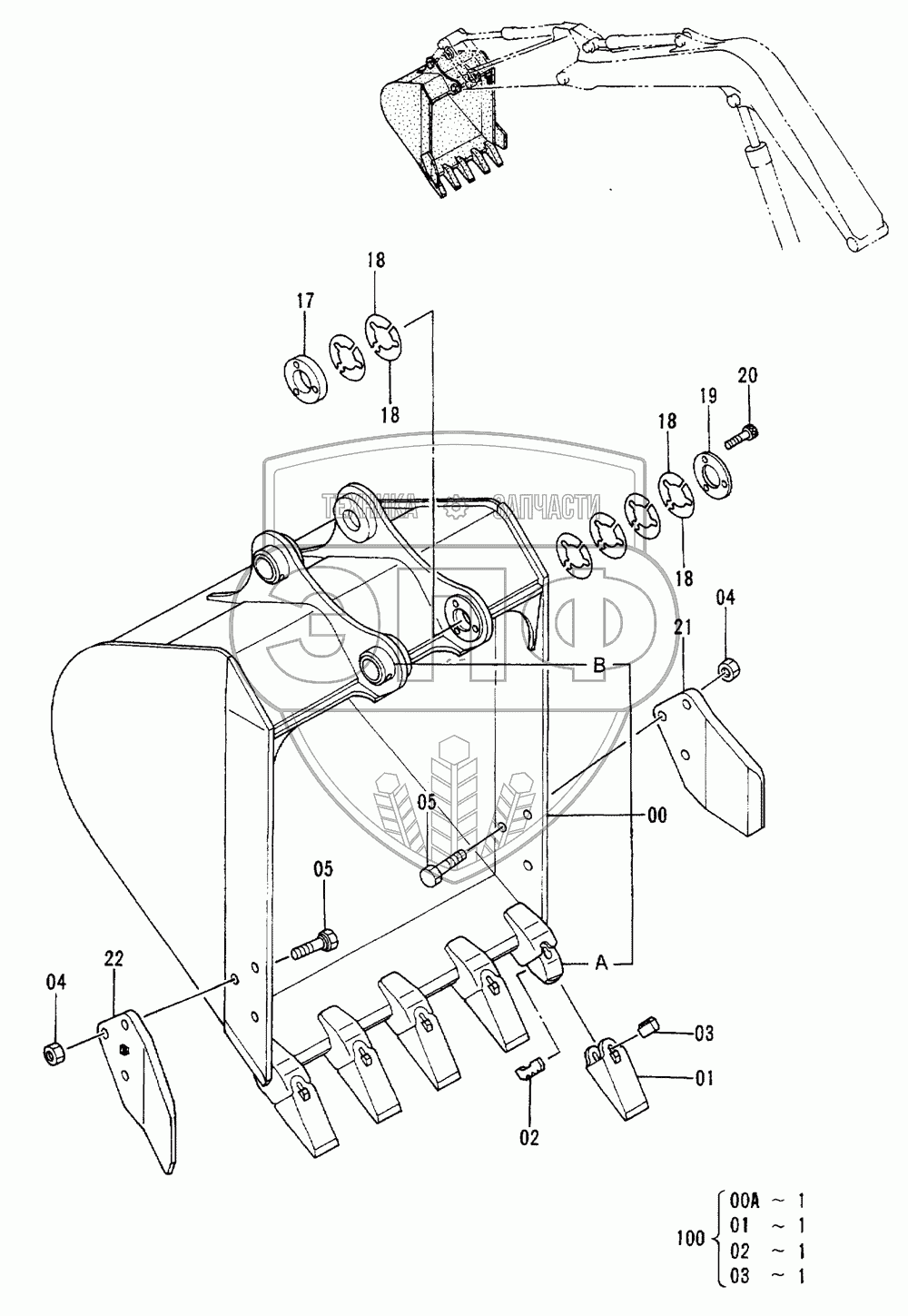 Каталог запасных частей к технике: Hitachi EX-60-2. Bucket 0.3