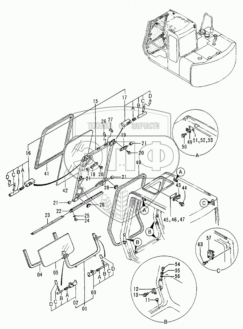 Каталог запасных частей к технике: Hitachi EX-60-2. Cab (2) (STD)