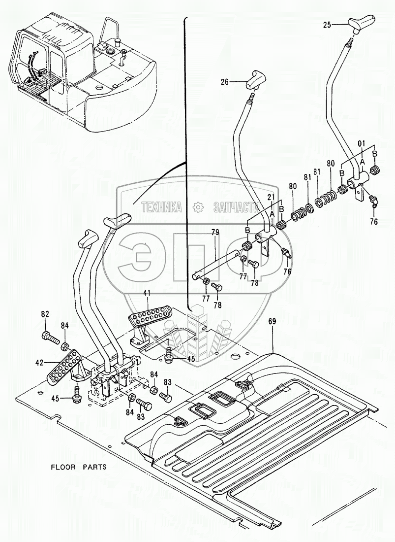 Каталог запасных частей к технике: Hitachi EX-60-2. Control Lever (2)