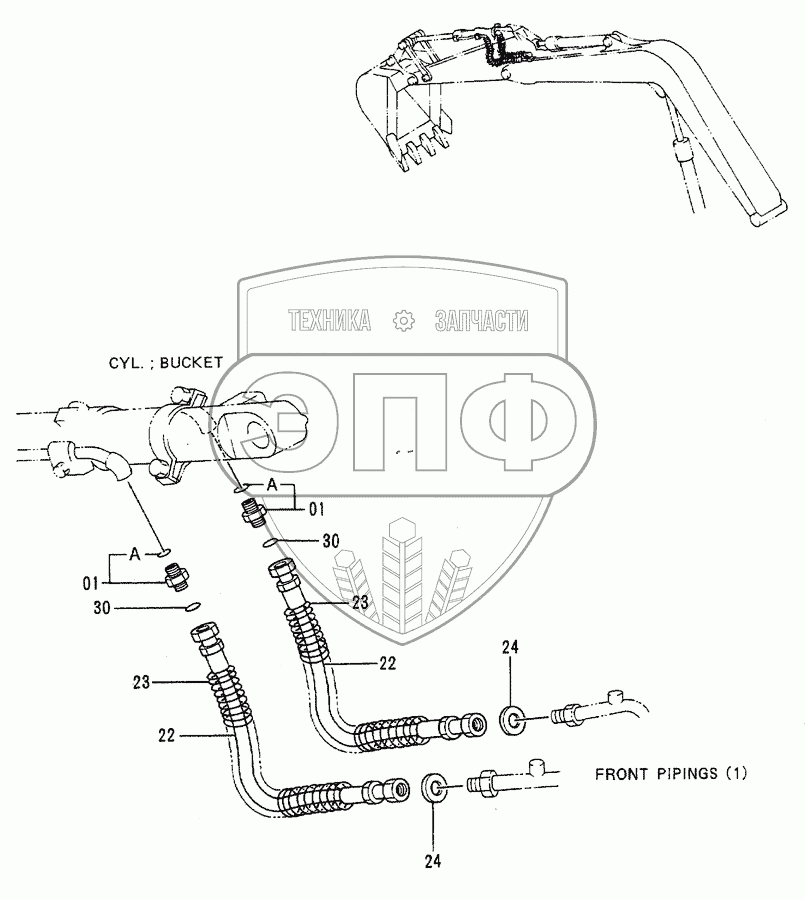 Каталог запасных частей к технике: Hitachi EX-60-2. Front Pipings (2)