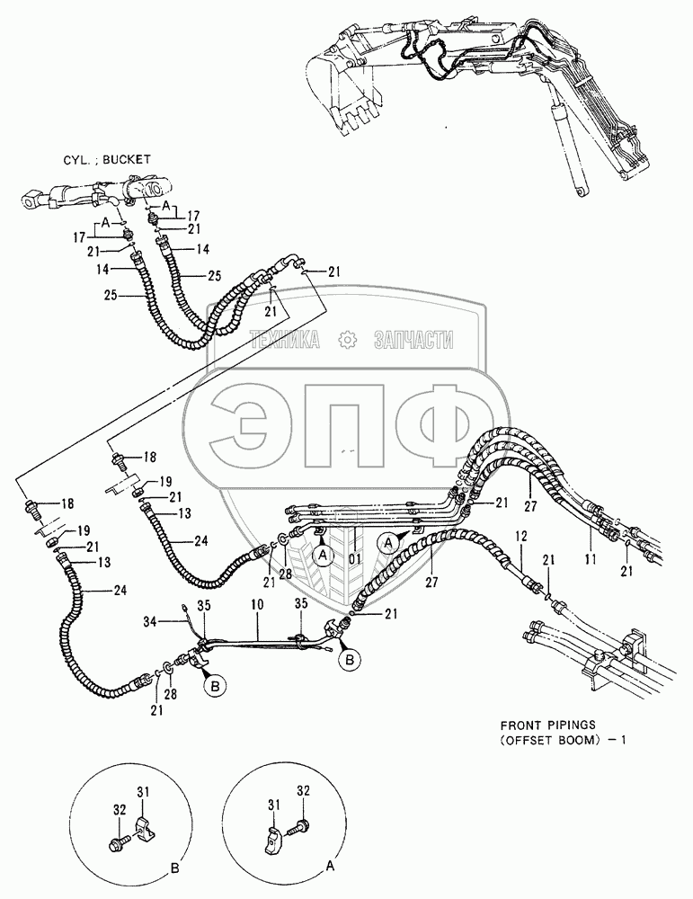 Каталог запасных частей к технике: Hitachi EX-60-2. Front Pipings (Offset Boom)-3