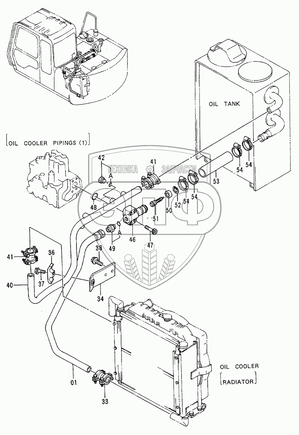 Каталог запасных частей к технике: Hitachi EX-60-2. Oil Cooler Pipings (2)