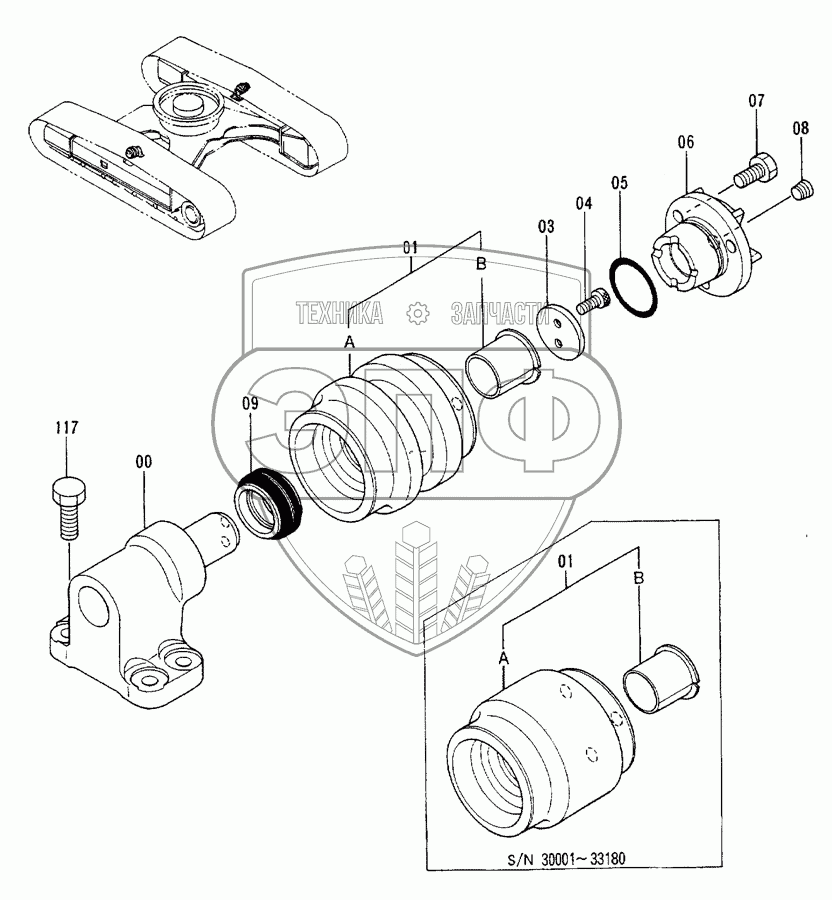 Каталог запасных частей к технике: Hitachi EX-60-2. Upper Roller