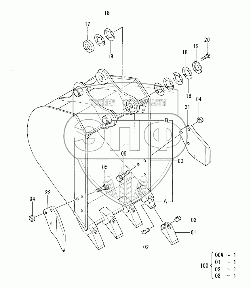 Каталог запасных частей к технике: Hitachi EX-60-3. BUCKET (0.25)