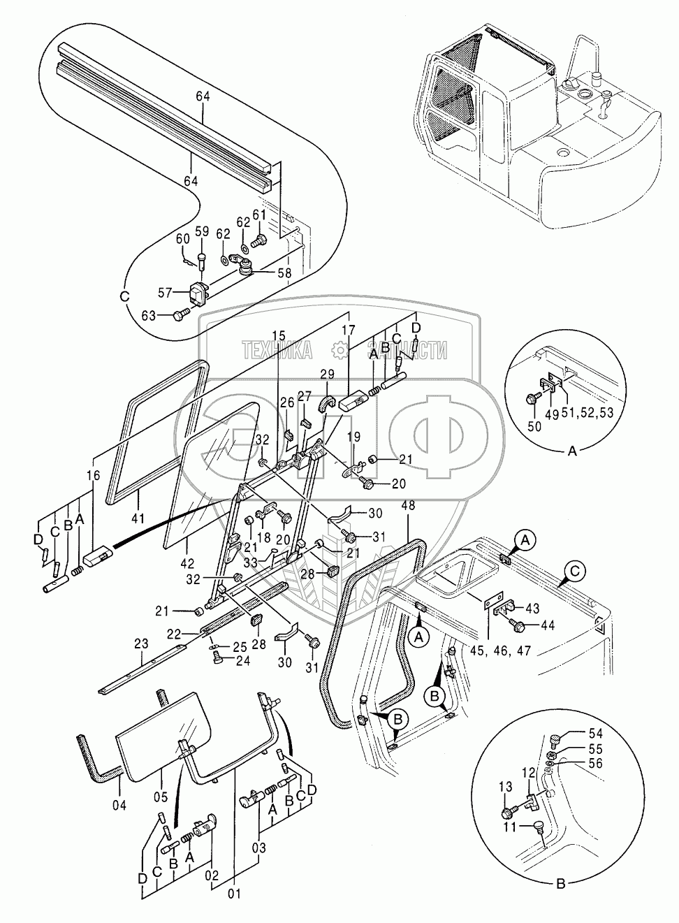 Каталог запасных частей к технике: Hitachi EX-60-3. CAB (EU)