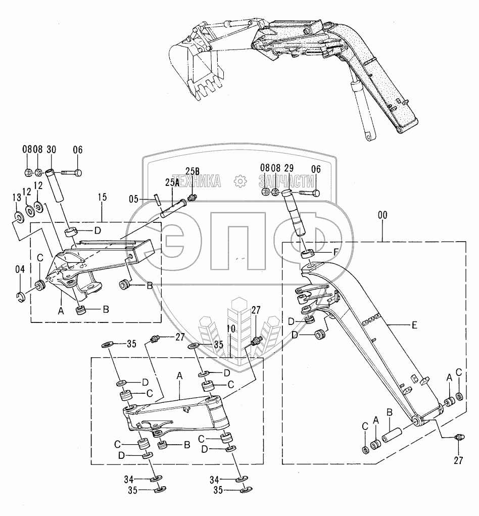 Каталог запасных частей к технике: Hitachi EX-60-3. OFFSET BOOM