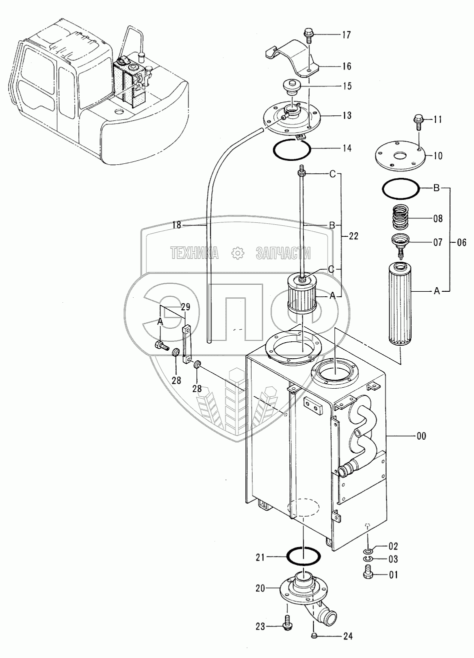 Каталог запасных частей к технике: Hitachi EX-60-3. OIL TANK <VIBRATOR>