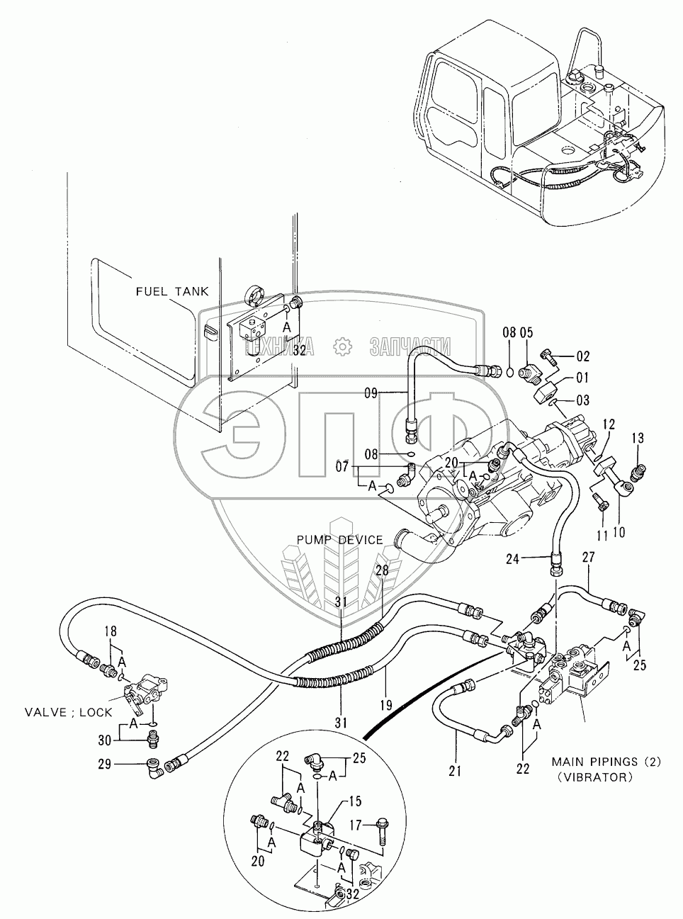 Каталог запасных частей к технике: Hitachi EX-60-3. PILOT PIPINGS <VIBRATOR>