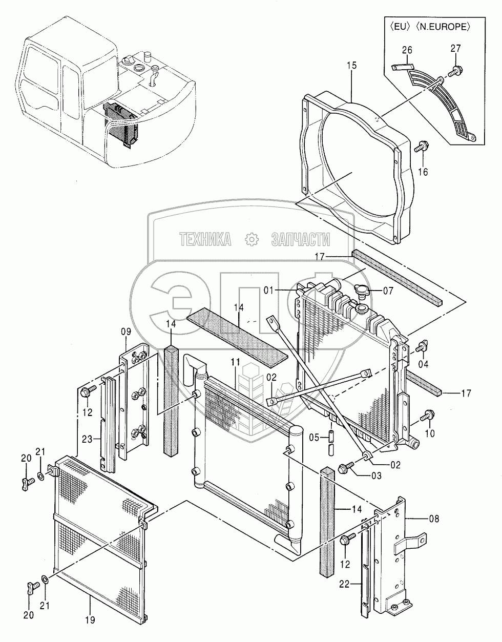 Каталог запасных частей к технике: Hitachi EX-60-3. RADIATOR