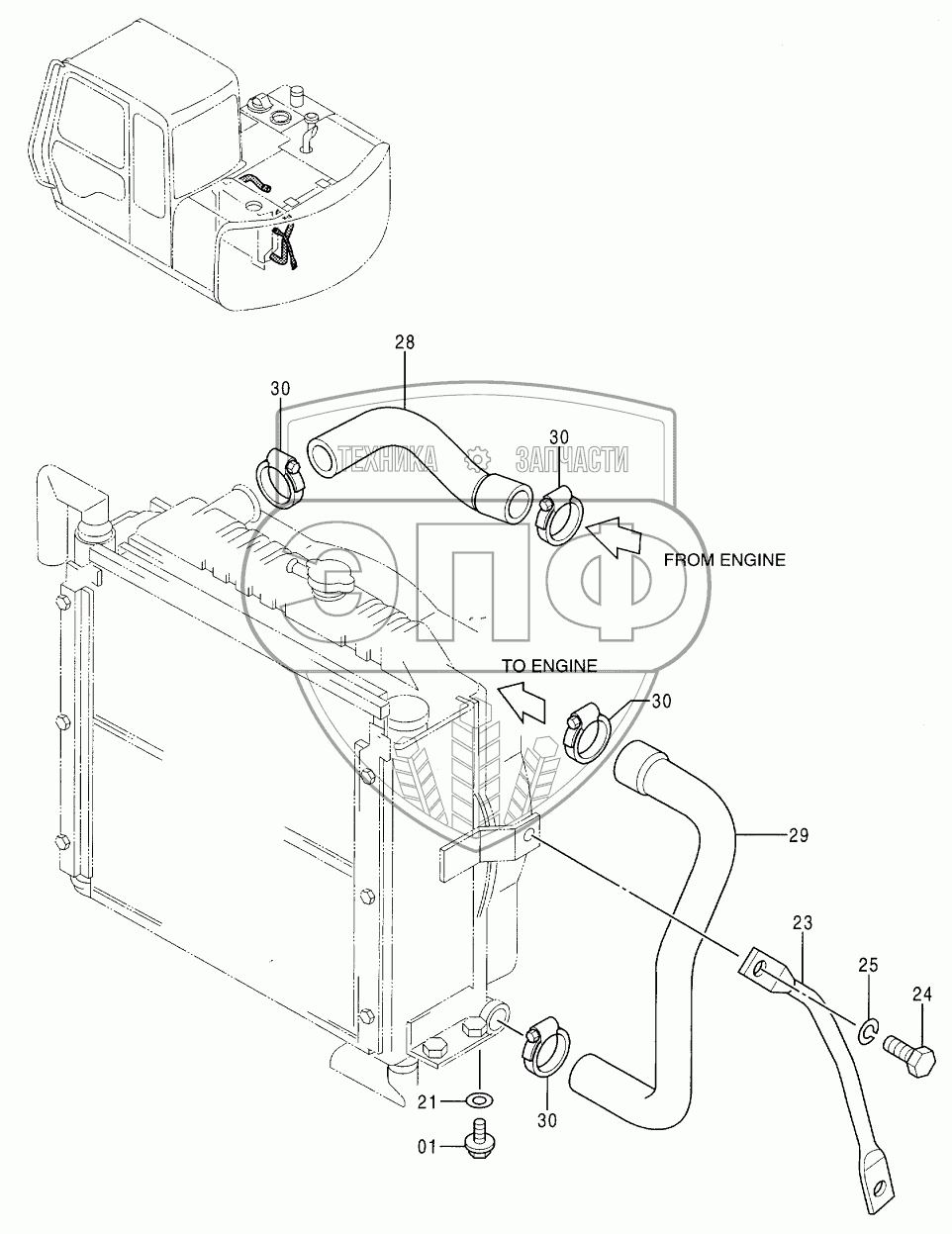 Каталог запасных частей к технике: Hitachi EX-60-3. RADIATOR SUPPORT