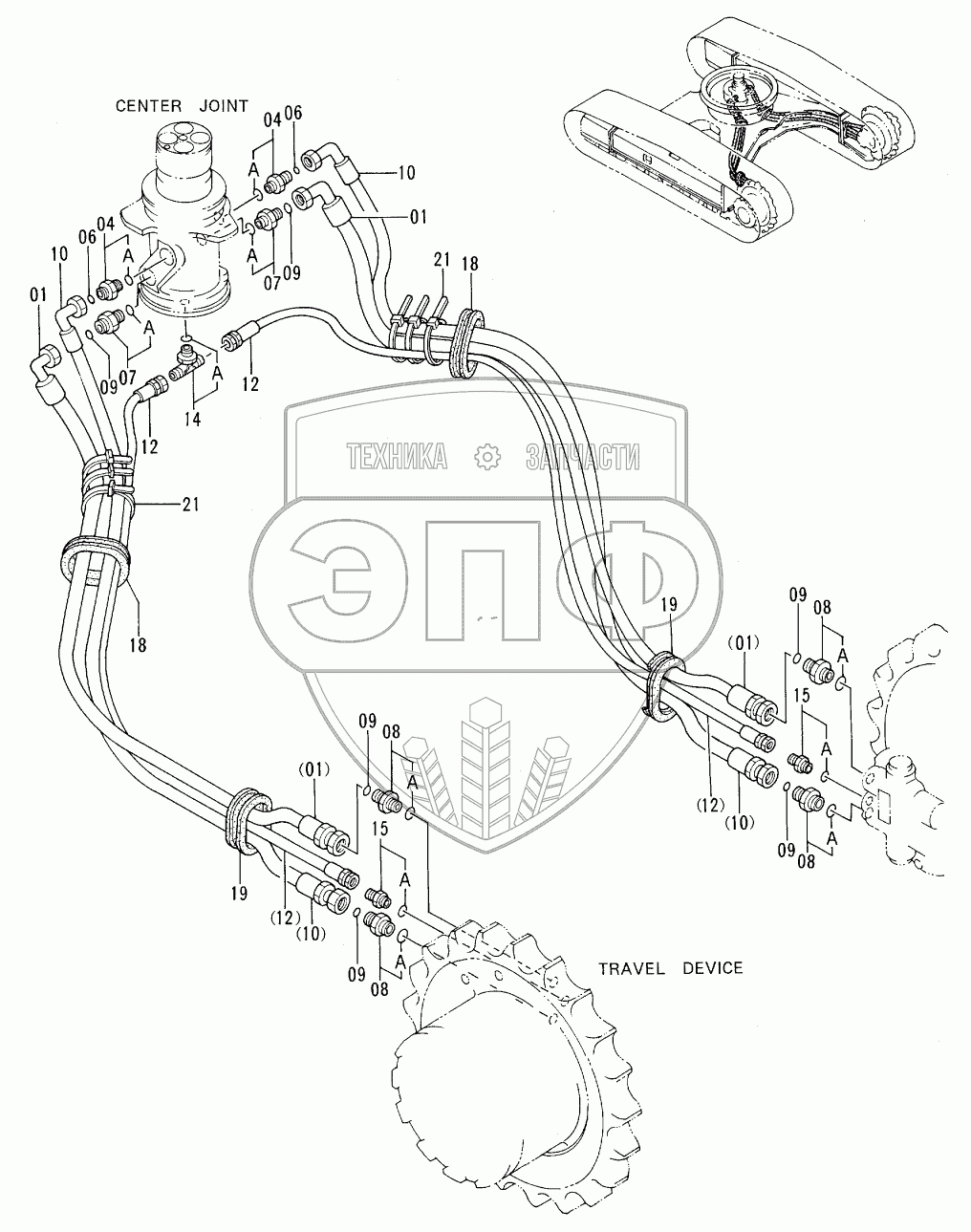 Каталог запасных частей к технике: Hitachi EX-60-3. TRAVEL PIPINGS <STD. TRACK>