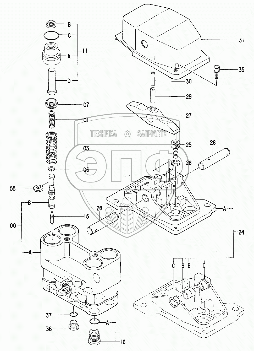 Каталог запасных частей к технике: Hitachi Компоненты EX-120-2. VALVE, PILOT