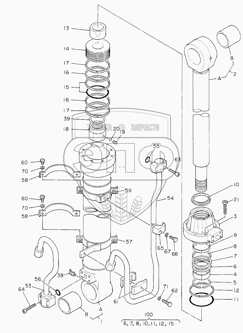 Каталог запасных частей к технике: Hitachi Компоненты EX-200. CYL., BOOM (R)
