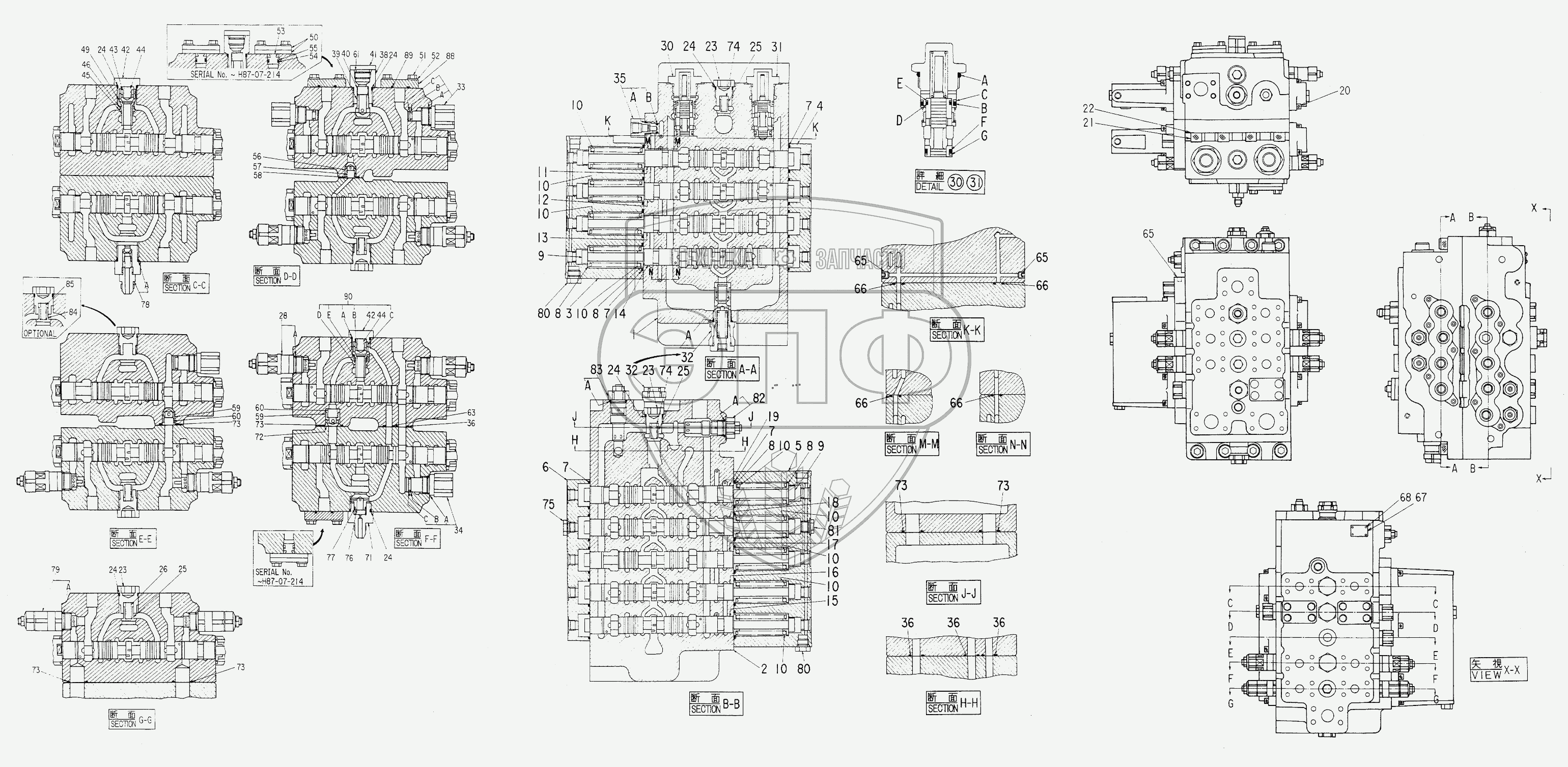 Каталог запасных частей к технике: Hitachi Компоненты EX-200. VALVE, CONTROL