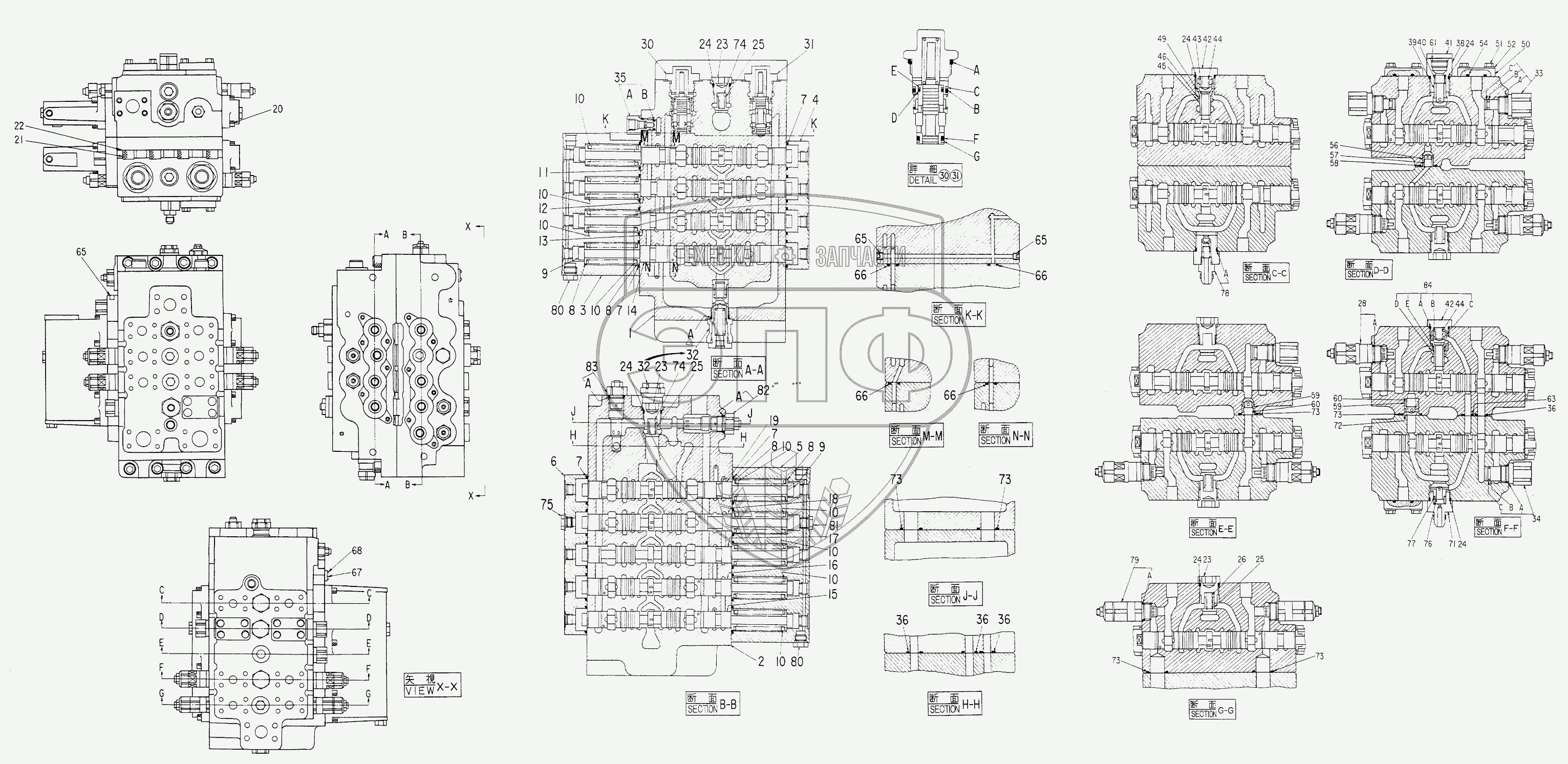 Каталог запасных частей к технике: Hitachi Компоненты EX-200. VALVE, CONTROL