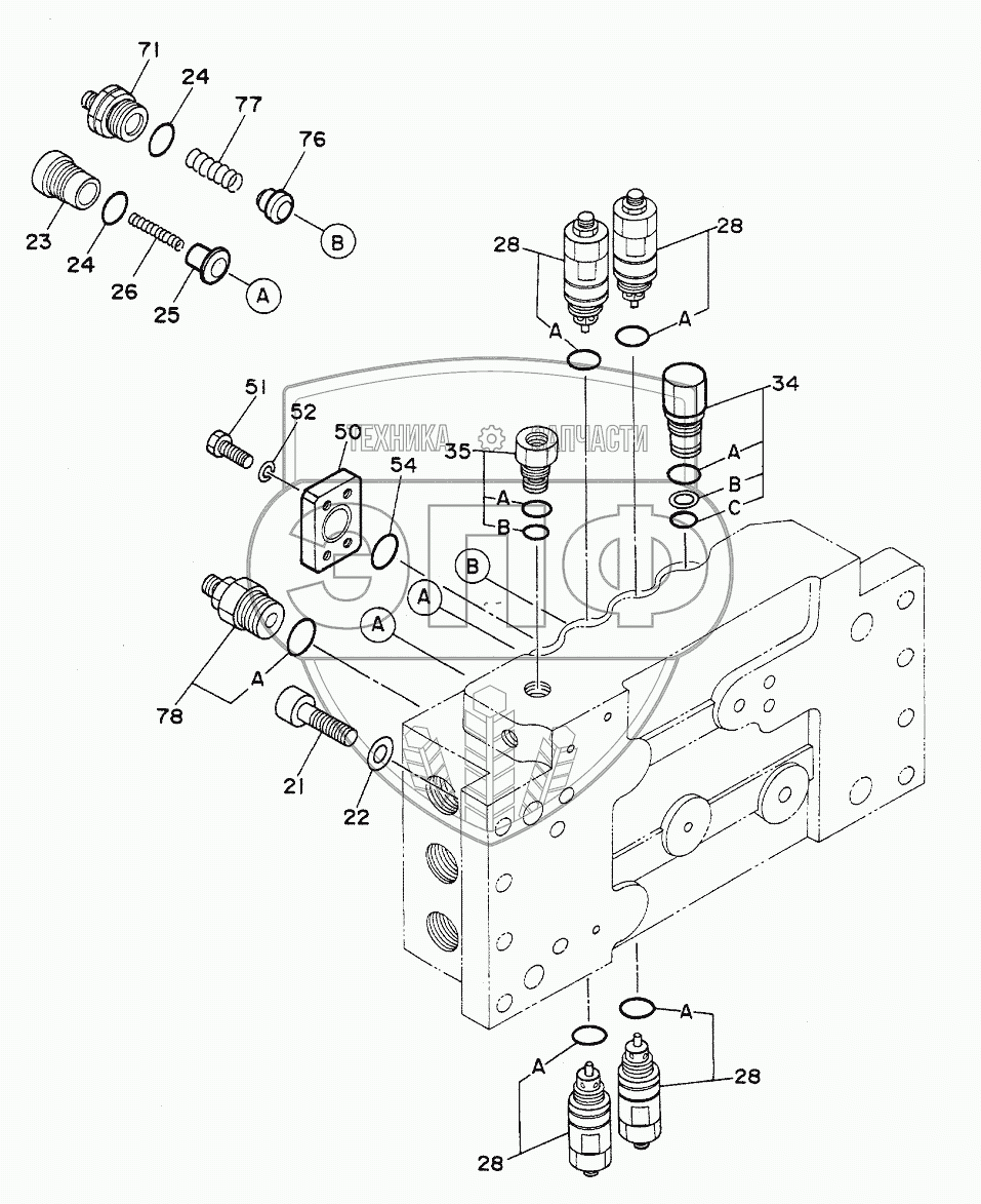 Каталог запасных частей к технике: Hitachi Компоненты EX-200. VALVE, CONTROL (3/4)