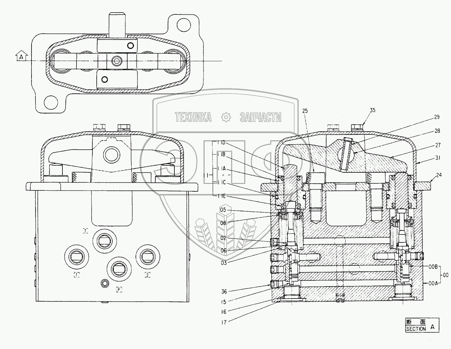 Каталог запасных частей к технике: Hitachi Компоненты EX-200. VALVE, PILOT