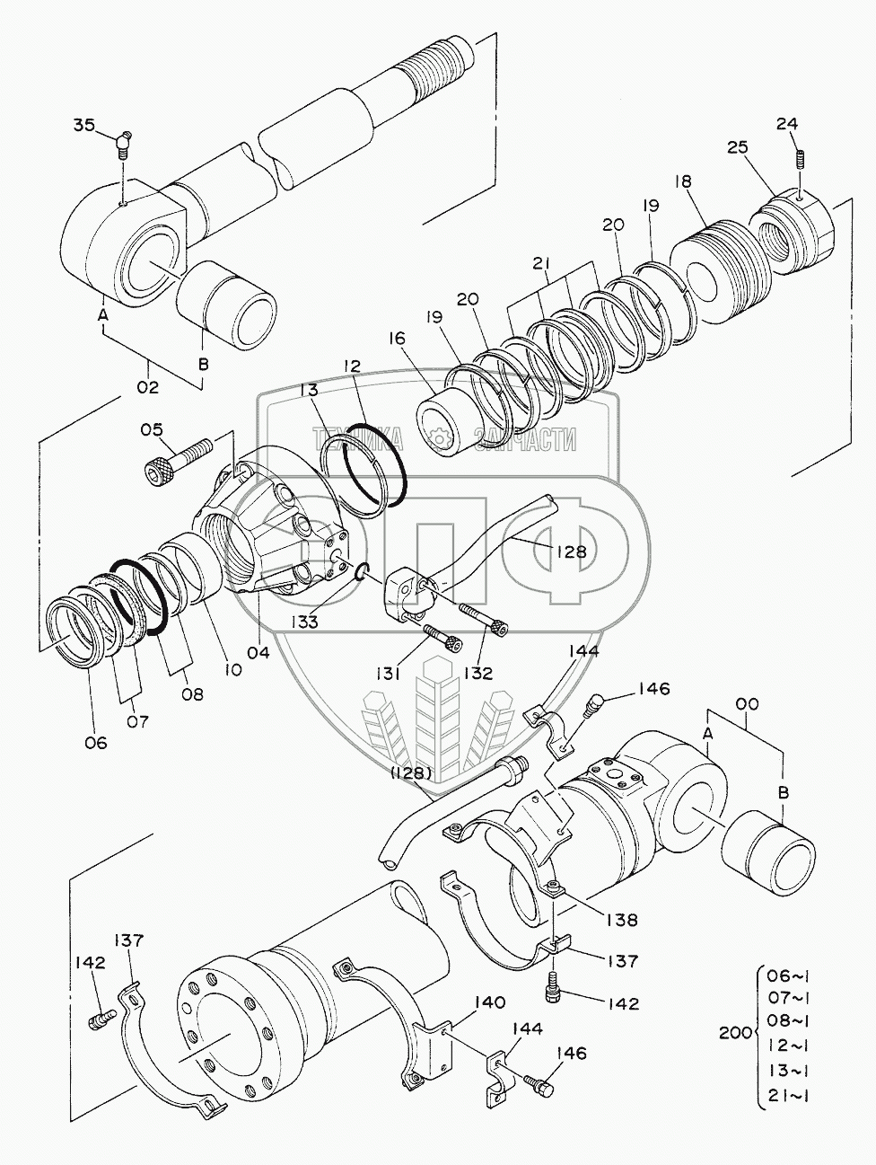Каталог запасных частей к технике: Hitachi Компоненты EX-220. CYL.,ARM