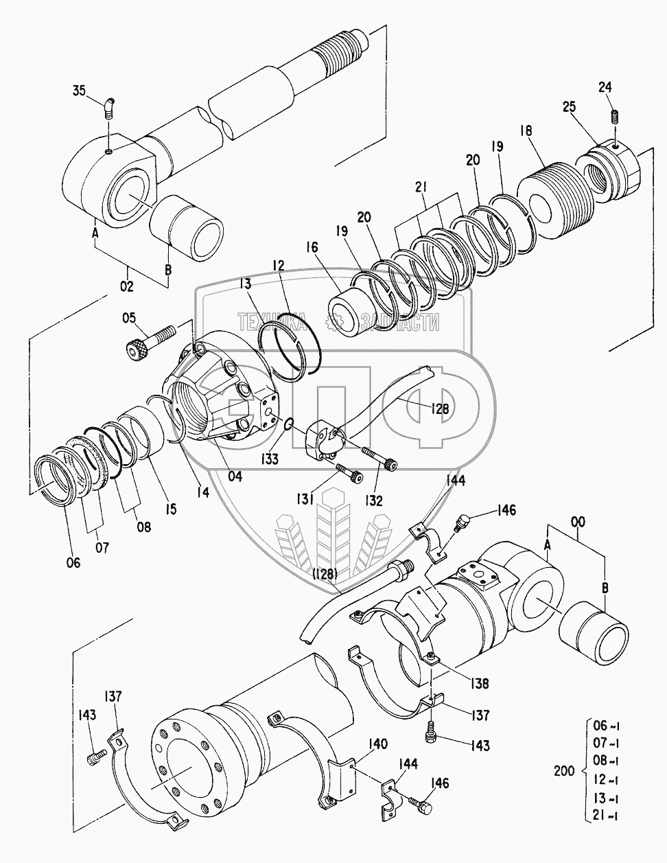 Каталог запасных частей к технике: Hitachi Компоненты EX-220. CYL.,ARM