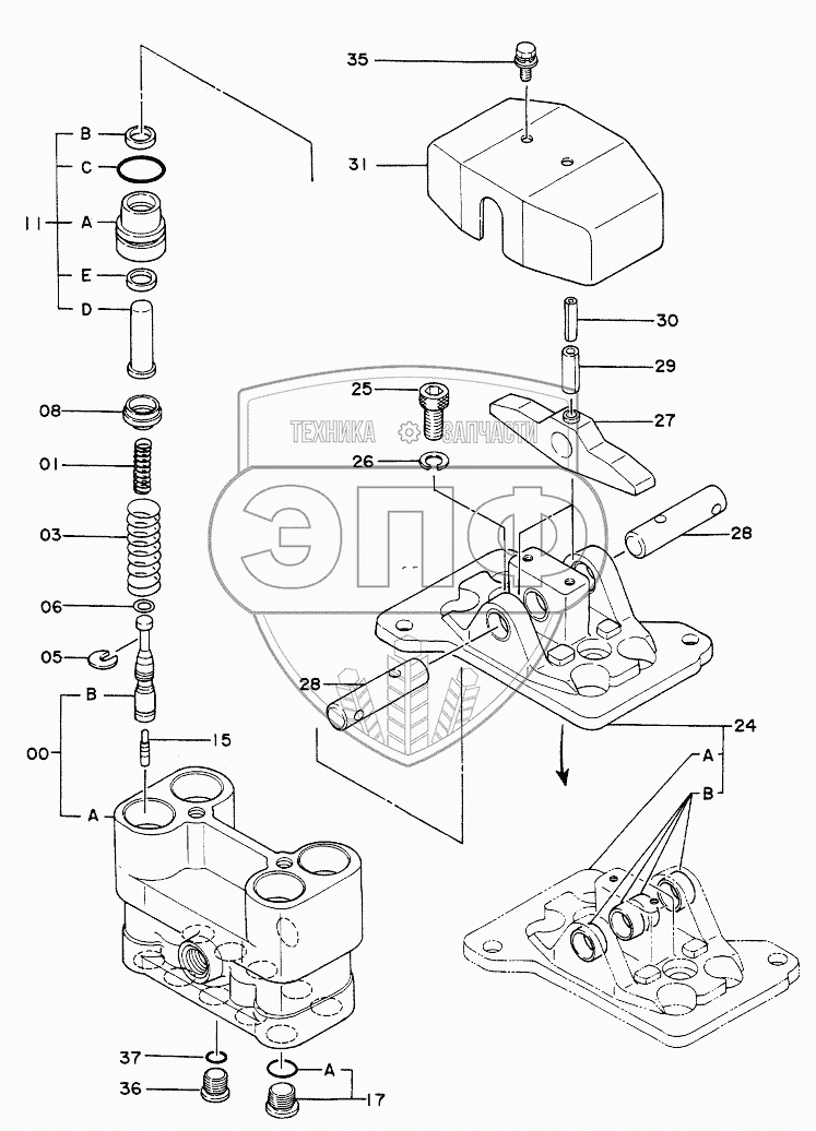 Каталог запасных частей к технике: Hitachi Компоненты EX-220. VALVE,PILOT