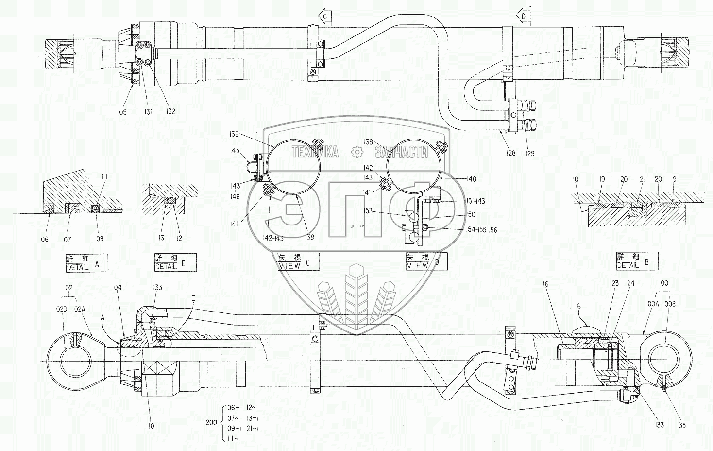 Каталог запасных частей к технике: Hitachi Компоненты EX-270. CYL., BOOM (R)