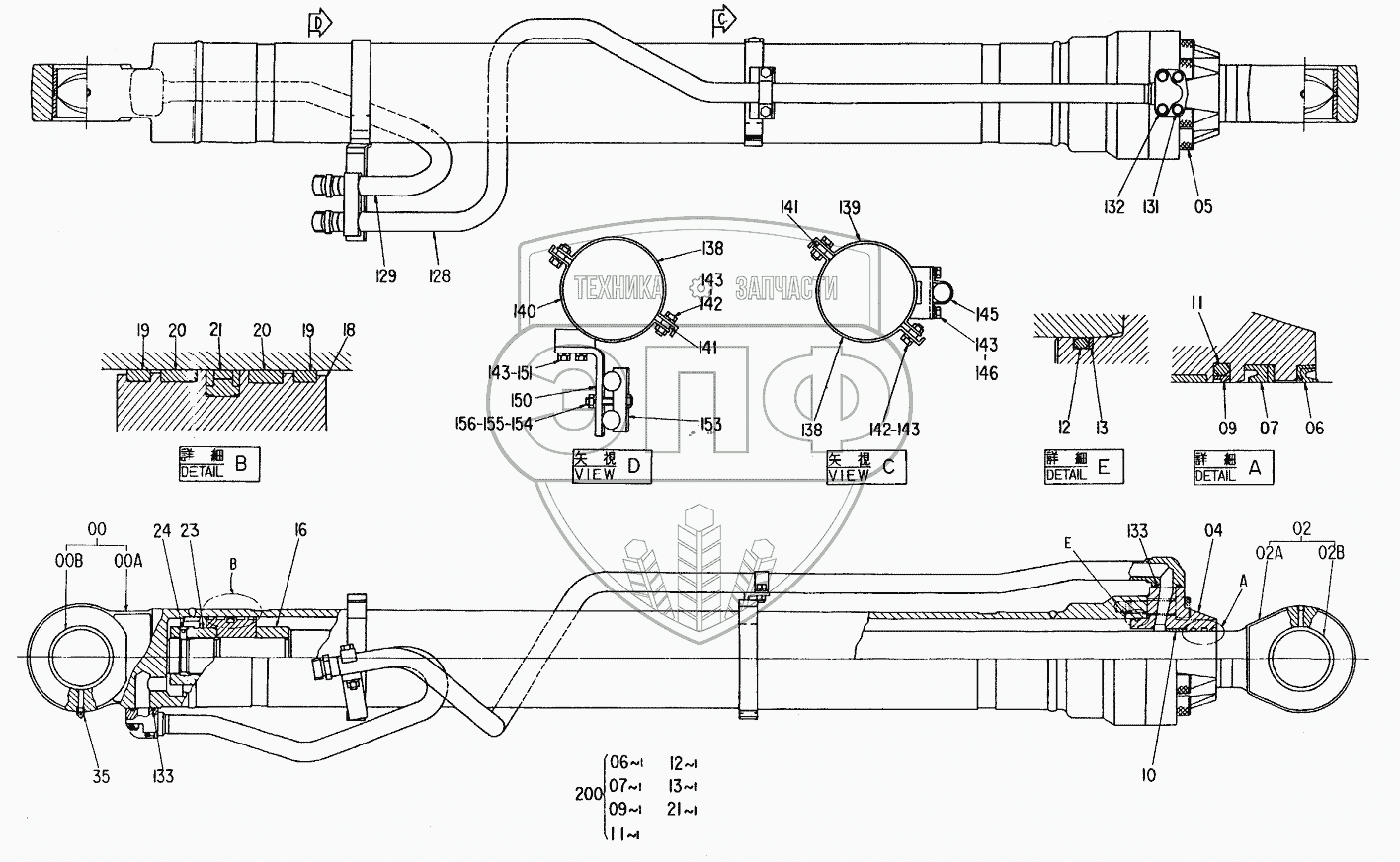 Каталог запасных частей к технике: Hitachi Компоненты EX-300. CYL.,BOOM (L)
