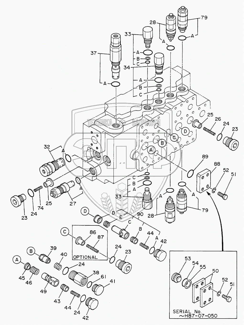 Каталог запасных частей к технике: Hitachi Компоненты EX-300. VALVE,CONTROL (2/4)