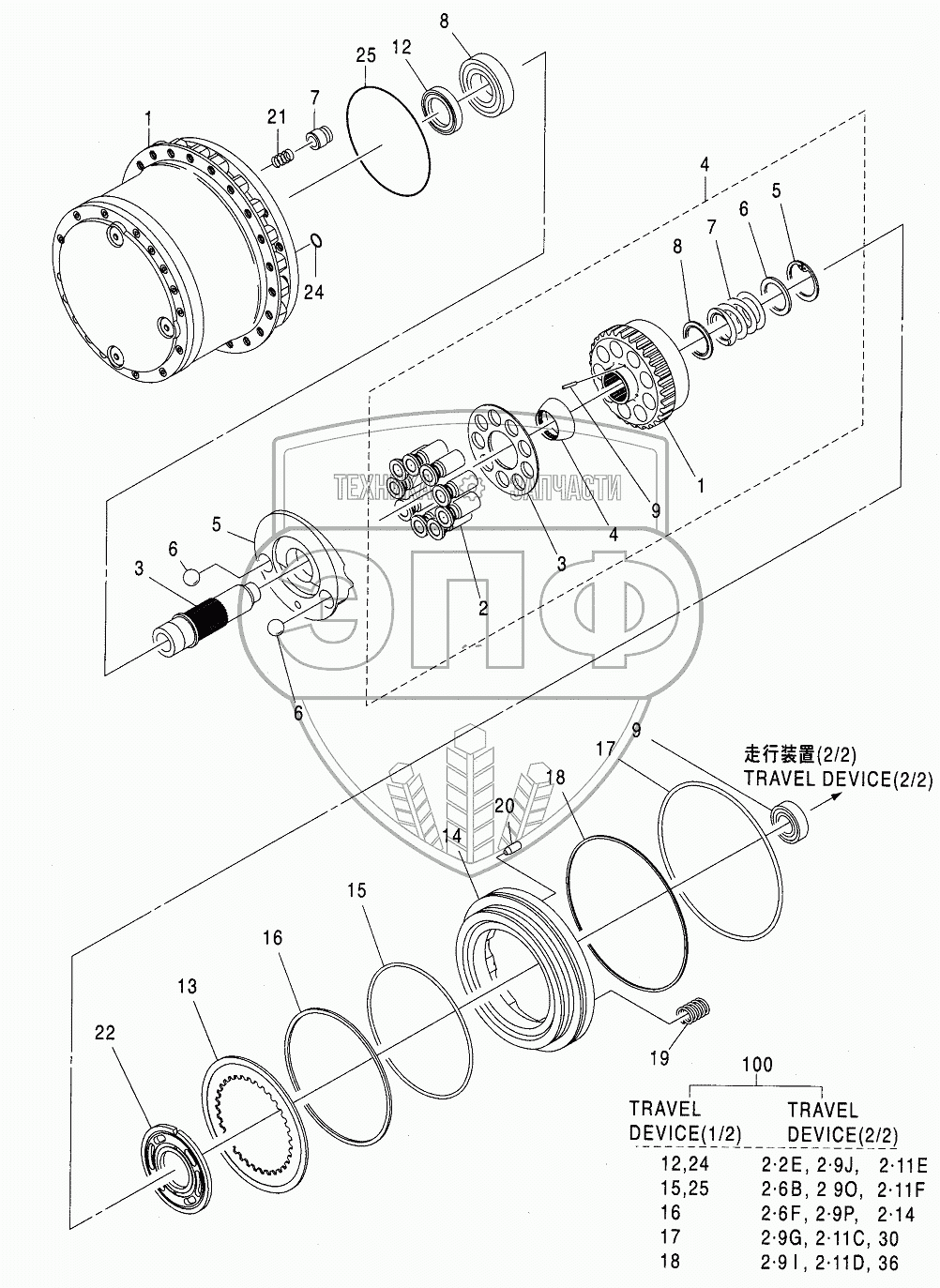 Каталог запасных частей к технике: Hitachi Компоненты ZX-110. TRAVEL DEVICE (1/2)