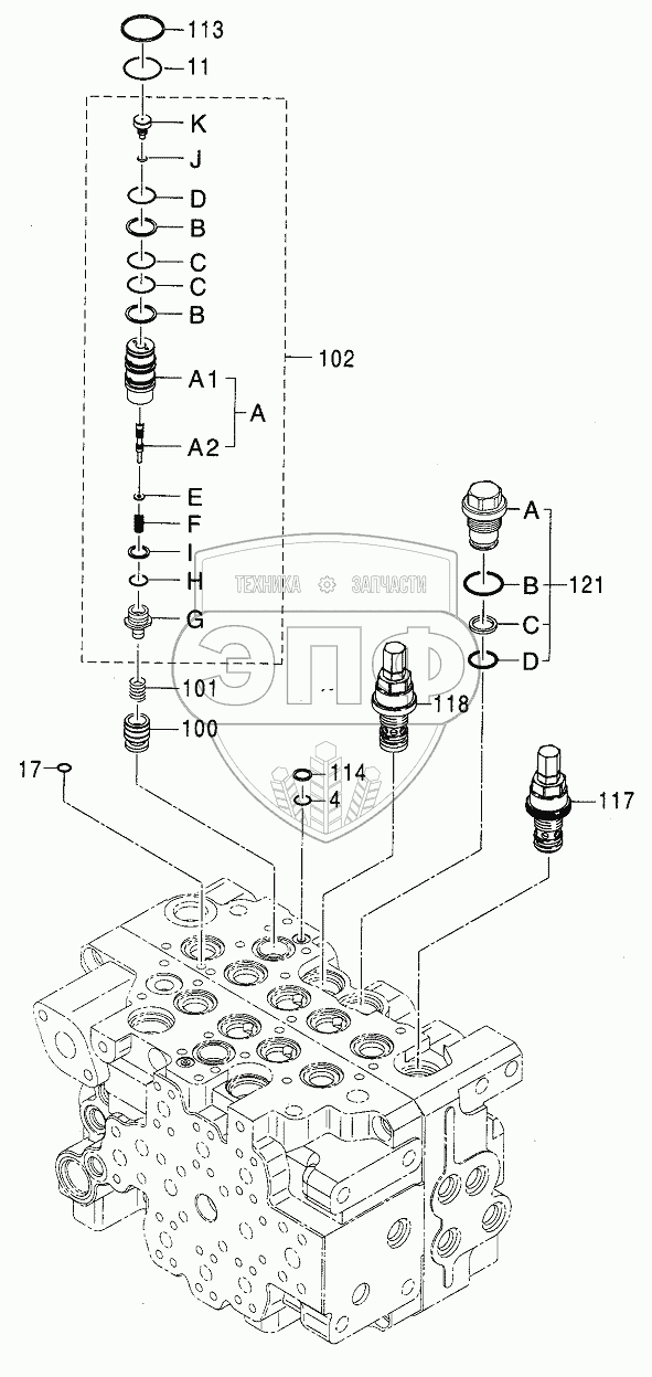 Каталог запасных частей к технике: Hitachi Компоненты ZX-110. VALVE, CONTROL (5/8)