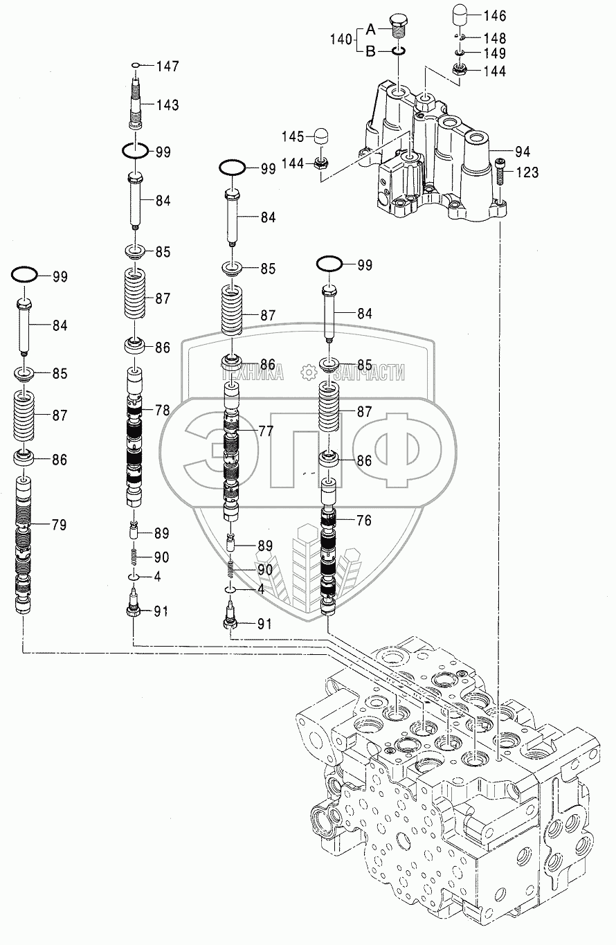 Каталог запасных частей к технике: Hitachi Компоненты ZX-110. VALVE, CONTROL (6/8)