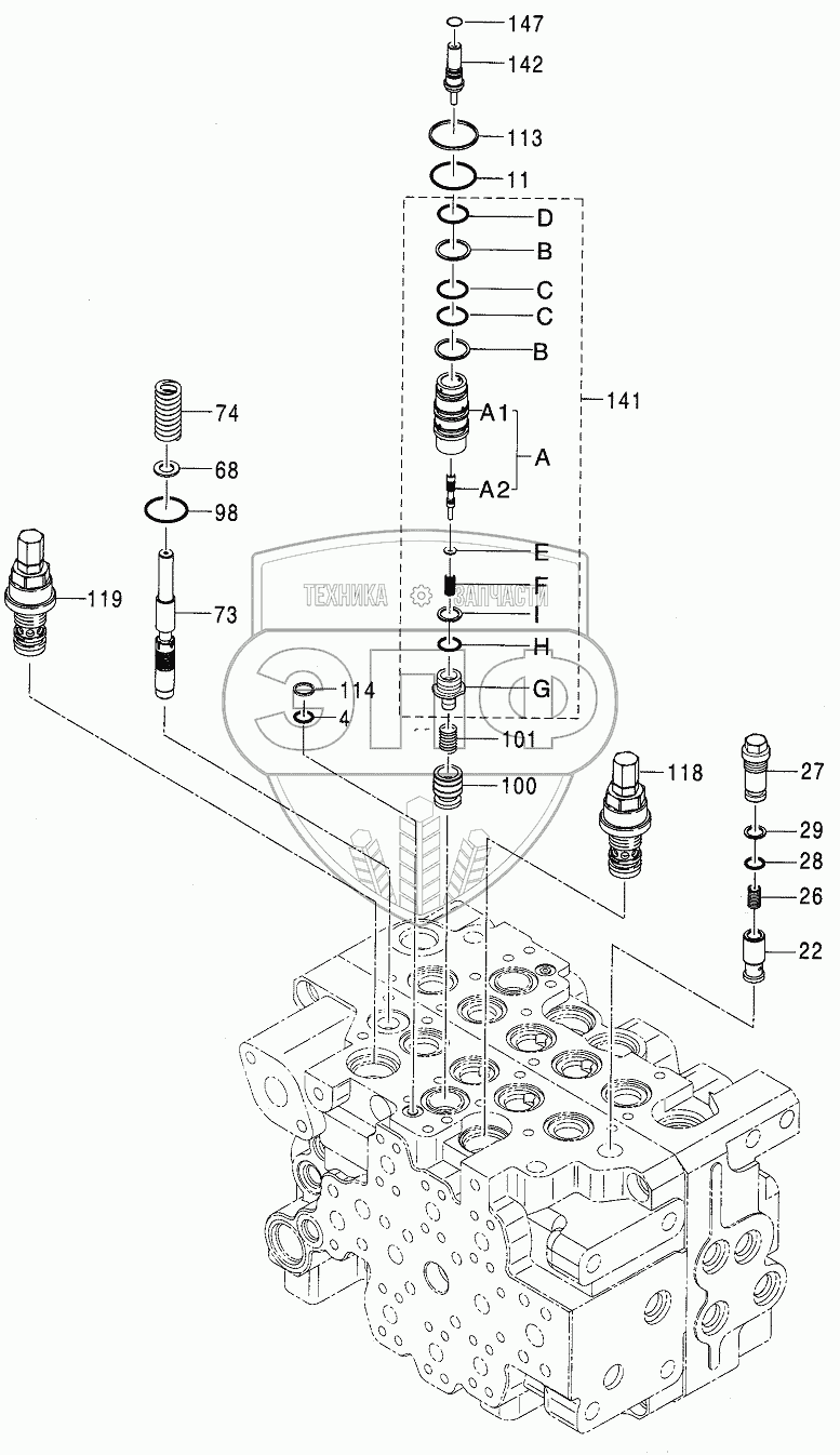 Каталог запасных частей к технике: Hitachi Компоненты ZX-110. VALVE, CONTROL (7/8)