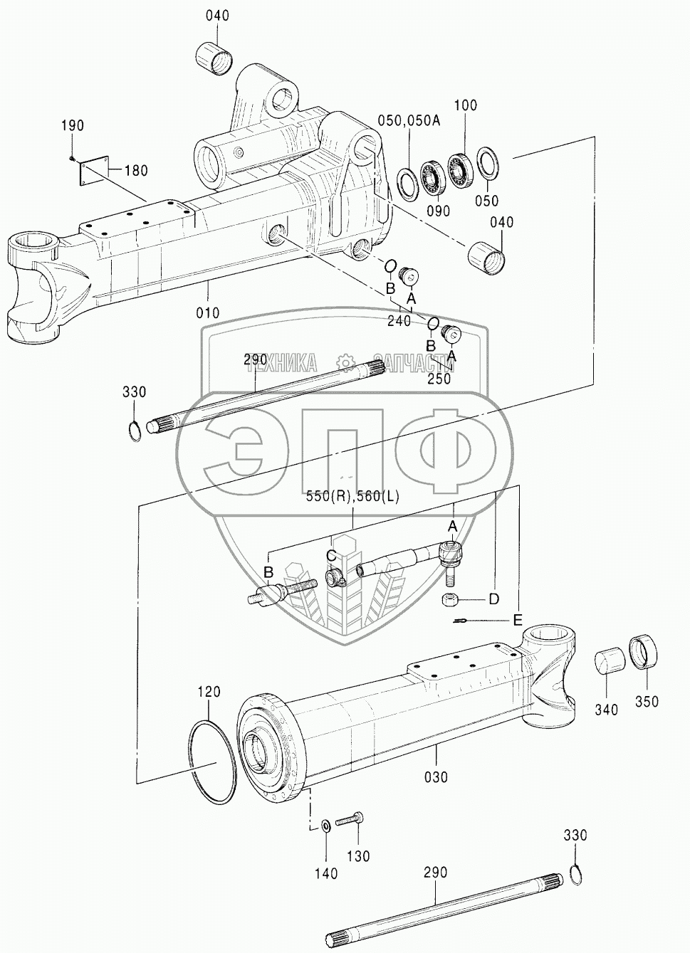 Каталог запасных частей к технике: Hitachi Компоненты ZX-160W. AXLE, FRONT (3)