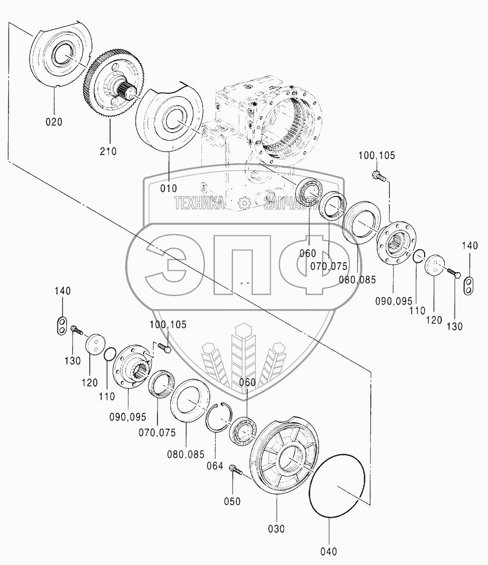 Каталог запасных частей к технике: Hitachi Компоненты ZX-160W. TRANSMISSION (10)