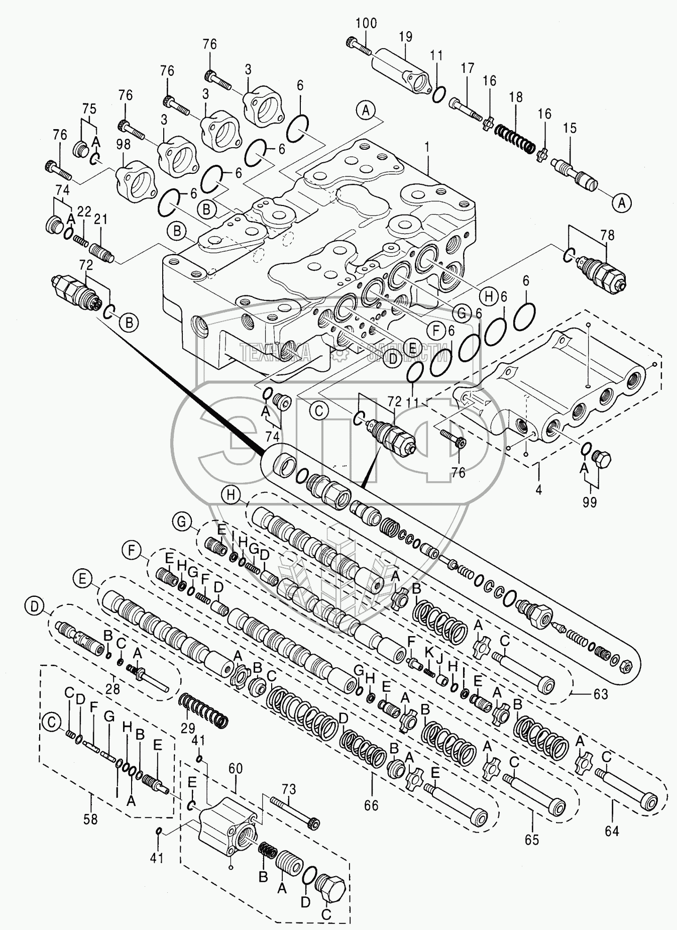 Каталог запасных частей к технике: Hitachi Компоненты ZX-200. VALVE, CONTROL (4/5)