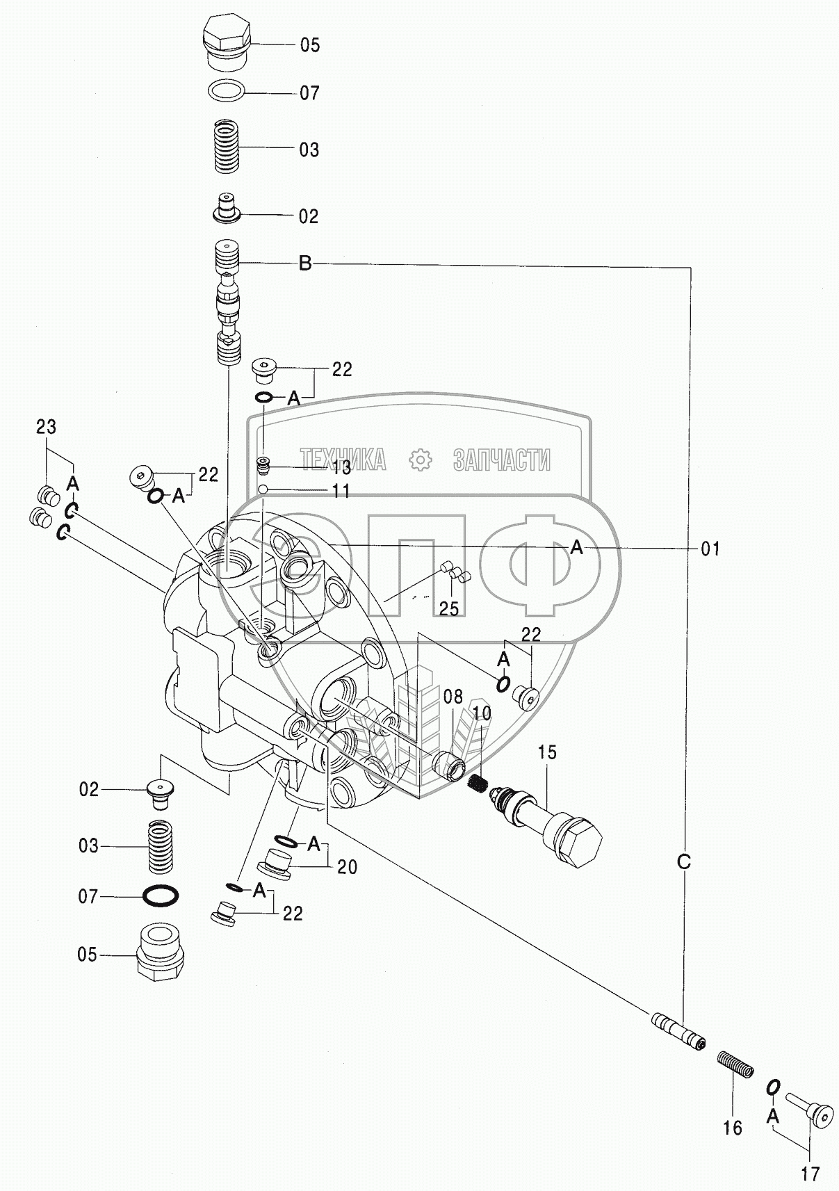 Каталог запасных частей к технике: Hitachi Компоненты ZX-230. VALVE, BRAKE