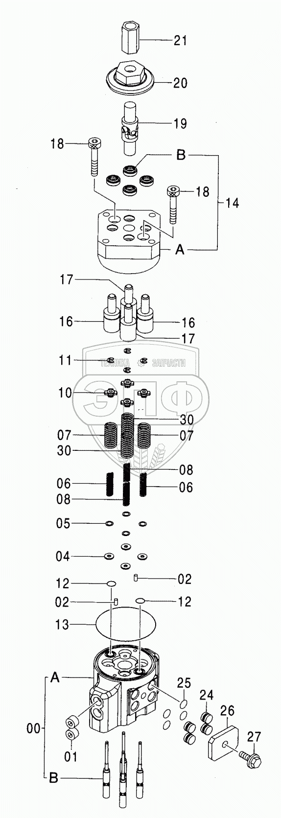 Каталог запасных частей к технике: Hitachi Компоненты ZX-230. VALVE, PILOT (FRONT & SWING)