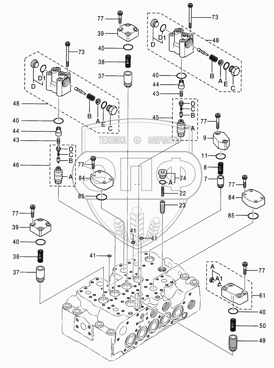 Каталог запасных частей к технике: Hitachi Компоненты ZX-270. VALVE, CONTROL (1/5)