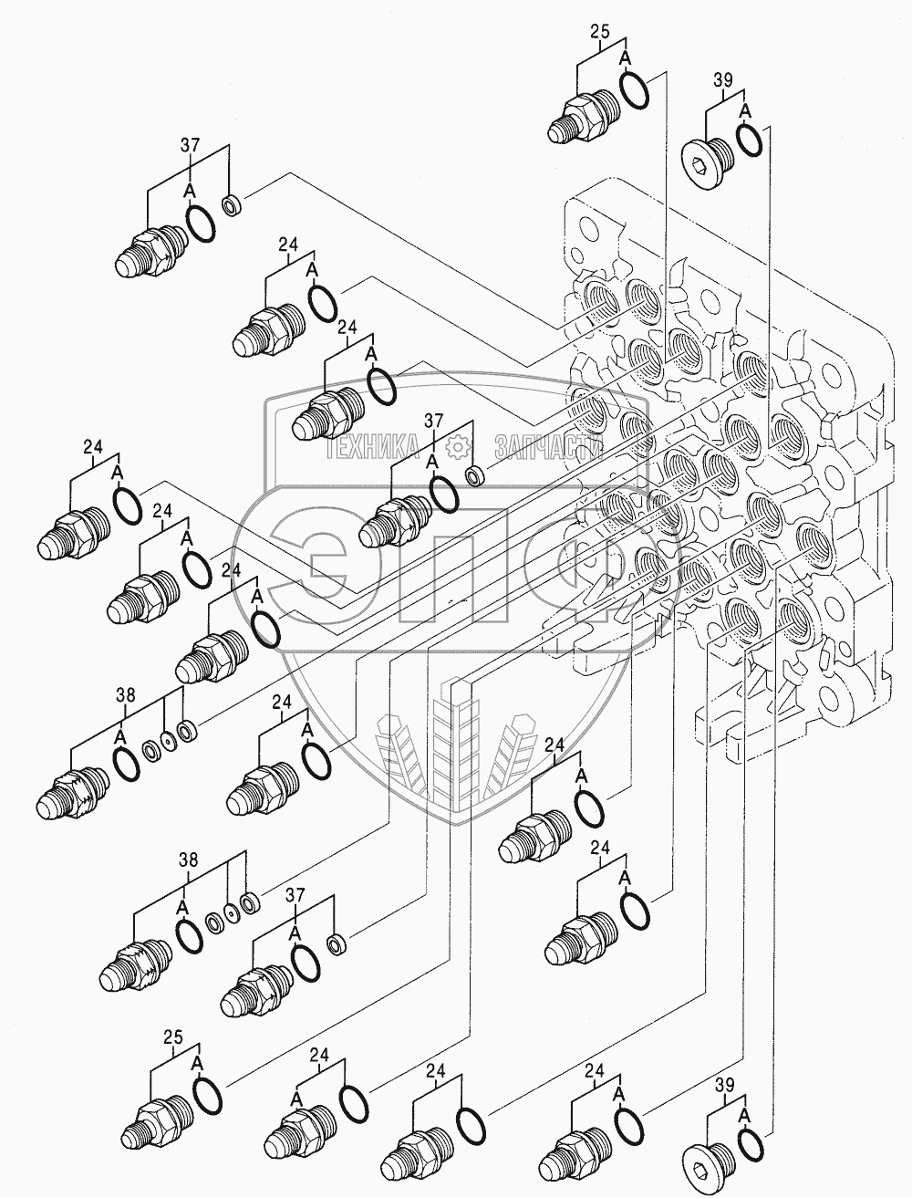 Каталог запасных частей к технике: Hitachi Компоненты ZX-270. VALVE, SHUTTLE (3/5)