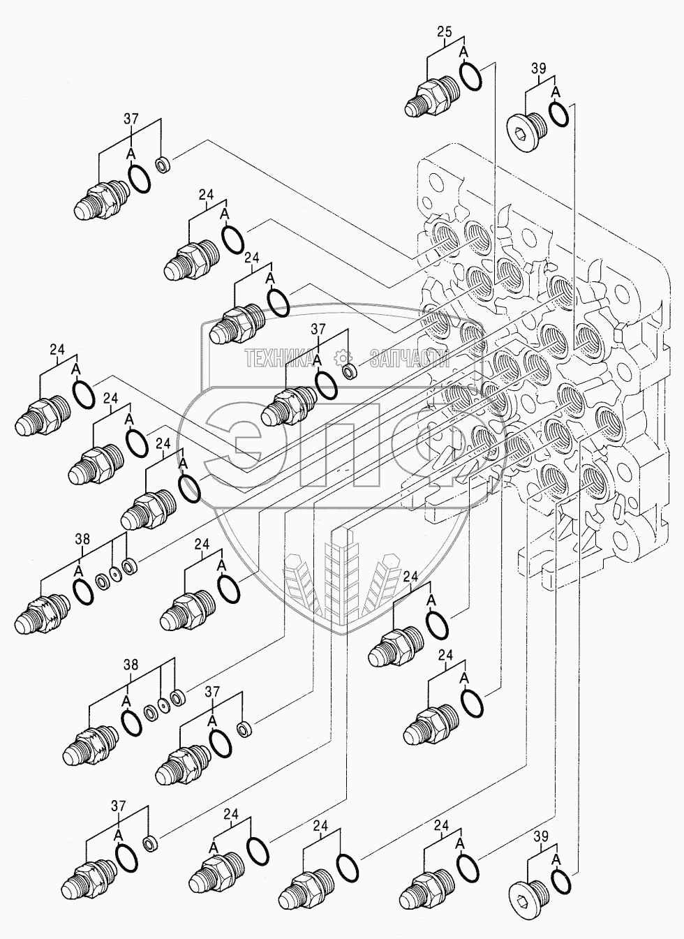 Каталог запасных частей к технике: Hitachi Компоненты ZX-270. VALVE, SHUTTLE (3/5)