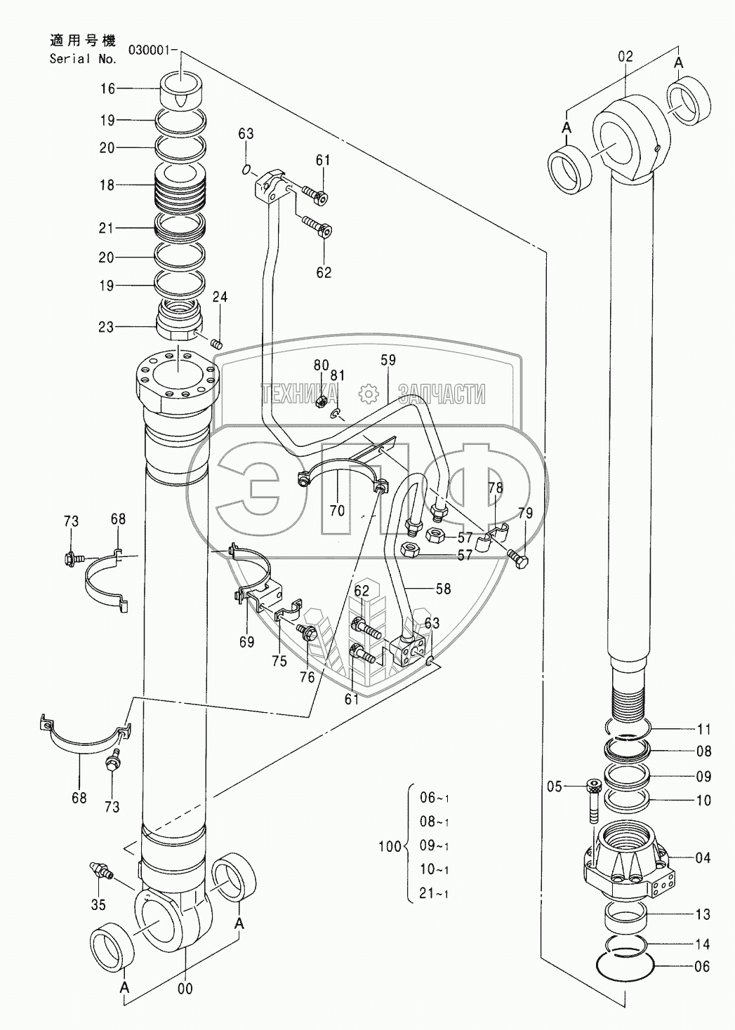 Каталог запасных частей к технике: Hitachi Компоненты ZX-330. CYL., BOOM (L)