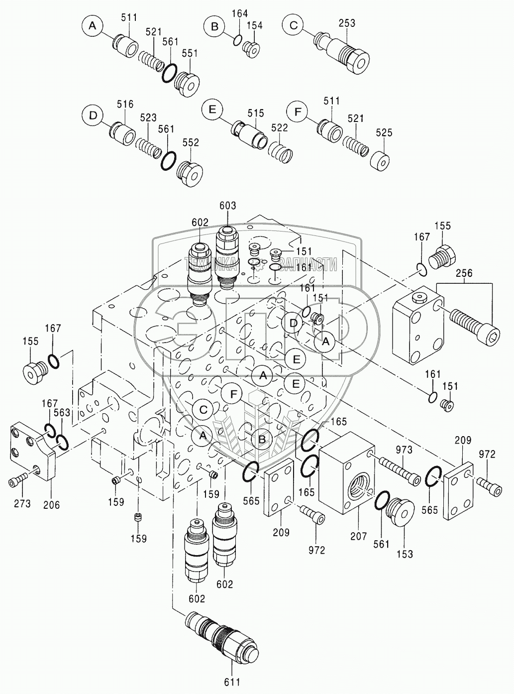 Каталог запасных частей к технике: Hitachi Компоненты ZX-330. VALVE, CONTROL (3/6)