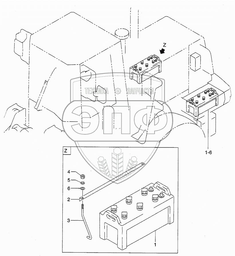 Каталог запасных частей к технике: Hitachi LX190-7/LX230-7. BATTERY