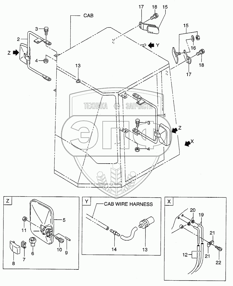 Каталог запасных частей к технике: Hitachi LX190-7/LX230-7. CAB (MIRROR)