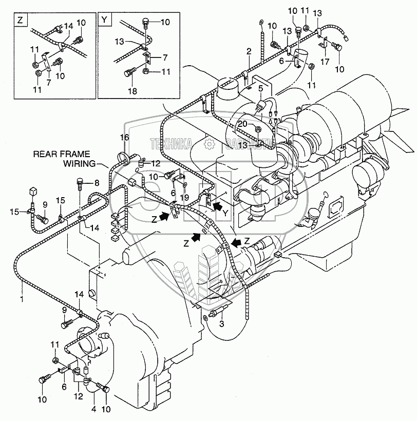 Каталог запасных частей к технике: Hitachi LX190-7/LX230-7. ENGINE WIRING