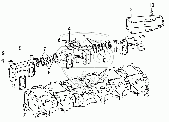 Каталог запасных частей к технике: Hitachi LX190-7/LX230-7. EXHAUST MANIFOLD
